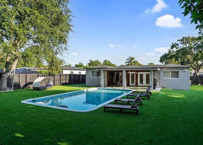 Featuring a private swimming pool for guests' relaxation, Tropical 4Br Villa With Pool, Bbq & Mini Golf Fun North Miami is located about a 25-minute stroll from North Miami Athletic Stadium. Featuring garden views, the Miami villa invites guests to visit the Haulover Sandbar, located 4.5 km away.